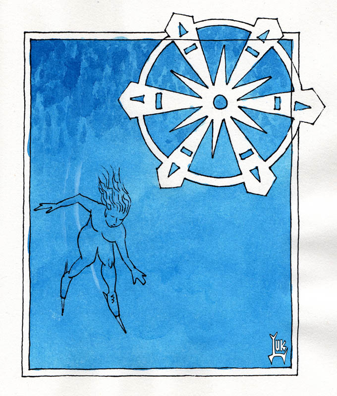 Watercolour with Lamy Safari pen, Platinum carbon black ink, Fabriano Venezia sketchbook, 20 x 25 cm (8 x 10 inches).